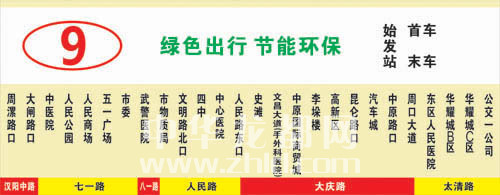 調整后,9路公交車的運行線路是:從周漯路口出發(fā),經漢陽中路、七一路、八一大道、人民路、大慶路,最后經太清路到達華耀城終點站,往返運行。