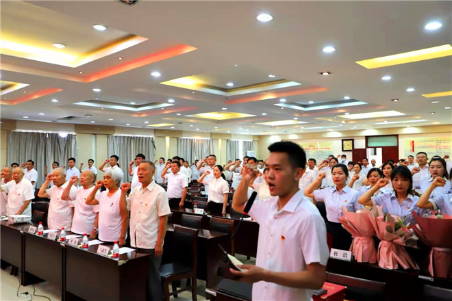大會在莊嚴(yán)的國歌聲中拉開序幕。隨后,全體黨員以滿腔的熱情,面向黨旗,重溫入黨誓詞。黨旗熠熠生輝,誓言鏗鏘有力,展現(xiàn)了新時(shí)代電力人為黨的事業(yè)奮斗終生的信心和決心。