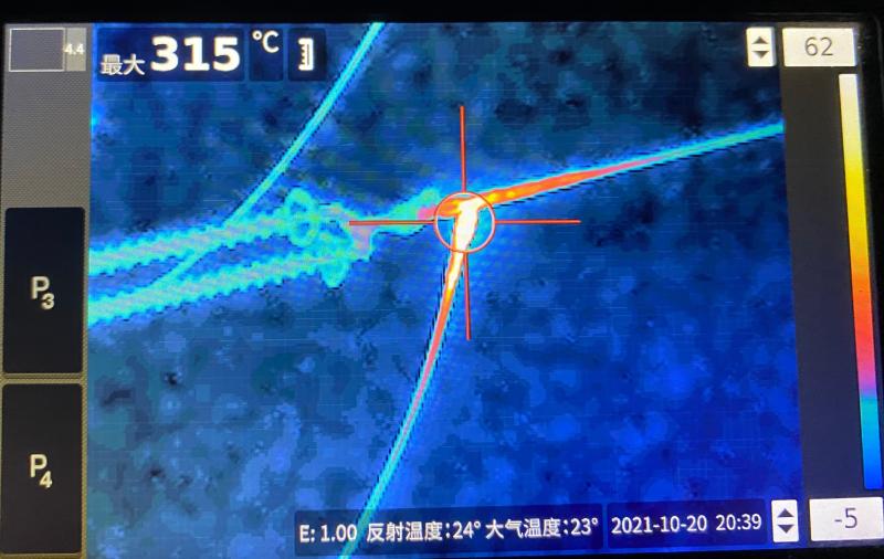 “蓮鄺線#19桿塔A相引流板連接螺栓發(fā)熱315℃,這屬緊急缺陷,需要立即處理!”10月20日晚,國網(wǎng)周口供電公司輸電運(yùn)檢中心在對110千伏蓮鄺線六級電網(wǎng)風(fēng)險(xiǎn)保電夜巡過程中,發(fā)現(xiàn)蓮鄺線#19桿塔A相引流板存在打火現(xiàn)象。