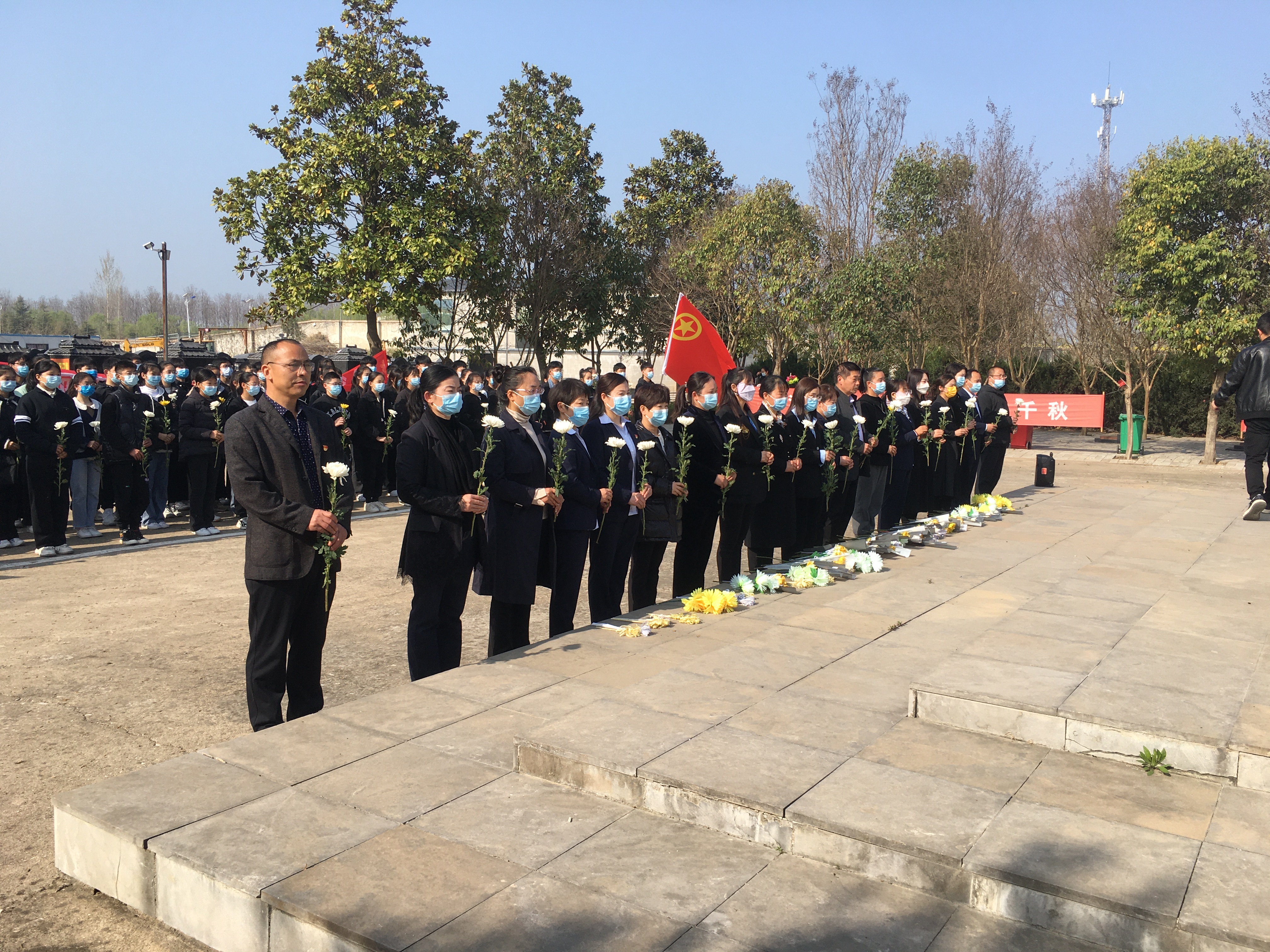 青山埋忠骨,史冊載功勛。商水縣烈士陵園廣場,學(xué)生們排著整齊的隊伍,莊嚴(yán)肅穆。學(xué)生代表向烈士紀(jì)念碑敬獻(xiàn)花籃,在墓前同學(xué)們低頭致哀,全體人員進(jìn)行三鞠躬表達(dá)對革命烈士的深切緬懷。學(xué)生代表向革命烈士獻(xiàn)詞,該校副校長王政華向同學(xué)們講述了烈士事跡,希望同學(xué)們能夠秉承先烈遺志,弘揚英雄精神,志存高遠(yuǎn),成長為棟梁之材。