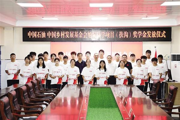 8月12日,中國石油 中國鄉(xiāng)村發(fā)展基金會(huì)旭航助學(xué)項(xiàng)目獎(jiǎng)學(xué)金發(fā)放儀式在扶溝縣高級(jí)中學(xué)舉行?;顒?dòng)現(xiàn)場(chǎng),30名品學(xué)兼優(yōu)的學(xué)子共獲15萬元愛心獎(jiǎng)學(xué)金。旭航助學(xué)項(xiàng)目是中國石油與中國鄉(xiāng)村發(fā)展基金會(huì)攜手發(fā)起的專注于教育領(lǐng)域的公益項(xiàng)目,旨在為家庭困難的高中生提供助學(xué)金和獎(jiǎng)學(xué)金,幫助他們完成學(xué)業(yè),實(shí)現(xiàn)求學(xué)夢(mèng)想。圖為活動(dòng)現(xiàn)場(chǎng)。記者 金月全