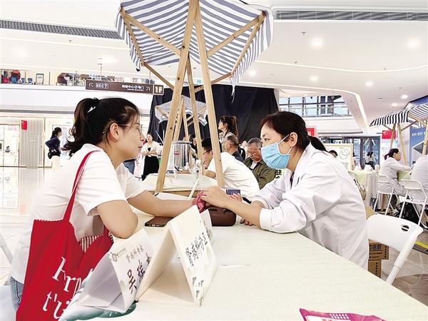 9月20日,周口市中醫(yī)院“中醫(yī)市集”走進(jìn)周口中心城區(qū)開(kāi)元萬(wàn)達(dá)廣場(chǎng),為市民提供中醫(yī)義診、中藥辨識(shí)、推拿按摩等服務(wù)。