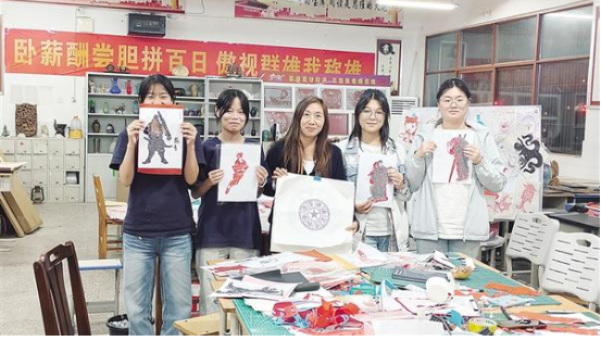9月26日,淮陽中學(xué)的藝術(shù)教室里,王海英正指導(dǎo)學(xué)生剪紙。